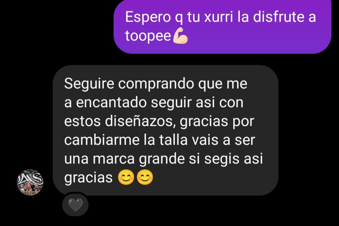 *Si usas una L pero pediste una XS por equivocación, obviamente no nos haremos cargo, así que elige bien la talla que creas conveniente*